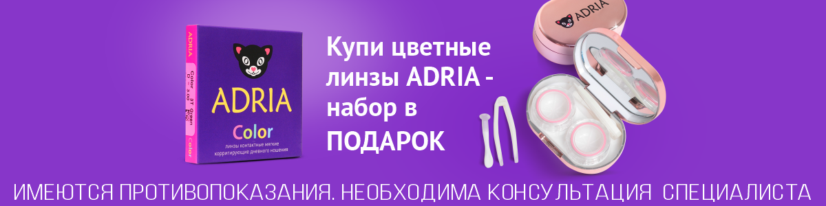 - При покупке цветных контактных линз Adria покупатель получает в подарок дорожный набор.