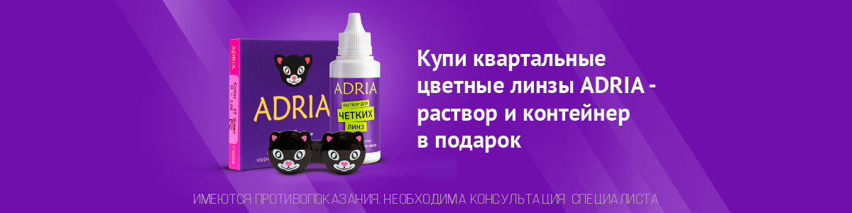 Купи квартальные цветные линзы Adria и получи раствор и контейнер в подарок.
