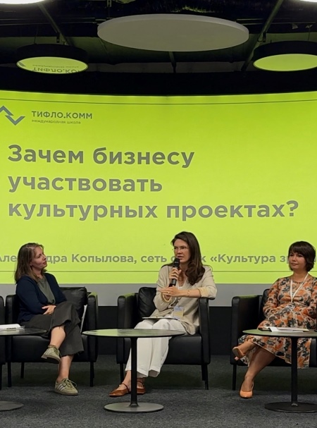 Международная школа ТИФЛО.КОММ, секция «Фандрайзинг», 28.08.2025, Ельцин Центр. Выступление Александры Копыловой, сеть оптик «Культура зрения»